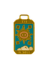 Charm rectangulaire inspiré de la carte du Soleil, en plaqué or 18K et émail turquoise éclatant. Ses détails lumineux et son œil central symbolisent la clarté, l’énergie et la protection.