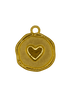 Charm rond en plaqué or 18K, orné d’un petit cœur délicatement bombé au centre. Sa finition brillante et son contour légèrement irrégulier rappellent un sceau ancien revisité, symbole d’affection et de douceur.