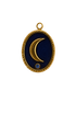 Charm ovale en plaqué or 18K, orné d’un émail bleu nuit intense. Sa lune dorée en relief et son cristal bleu profond évoquent la guidance, l’intuition et la sérénité des nuits étoilées.