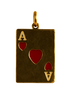 Charm “Asso” en plaqué or 18K, inspiré des cartes emblématiques. Sa silhouette rectangulaire met en valeur un cœur rouge émaillé, symbole de passion et de chance, accompagné de deux “A” délicatement dorés pour rappeler l’iconique As de Cœur.